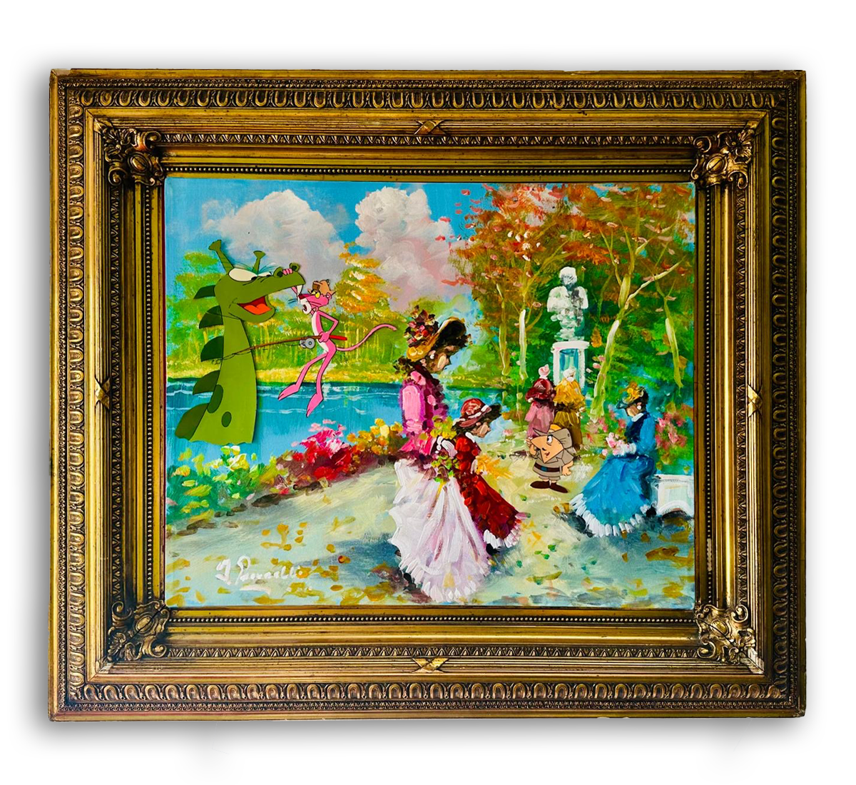 Dabei spielt er mit der Idee der Vergänglichkeit und zeigt, wie aus vergangenen Ideologien und Kunstwerken stetig Raum für Neues entsteht. Ein zentrales Motiv ist die Hommage an den rosaroten Panther, der aus einem Filmvorspann zu einer der bekanntesten Zeichentrickserien wurde. Besonders im deutschsprachigen Raum war diese Serie geprägt von Gert Günther Hoffmanns humorvollen Kommentaren, die durch übertriebene Vergleiche und ironische Bemerkungen die Handlung erweiterten. Ähnlich geht der Künstler vor, indem er bestehenden Szenarien einen neuen, oft humorvollen Blickwinkel verleiht.